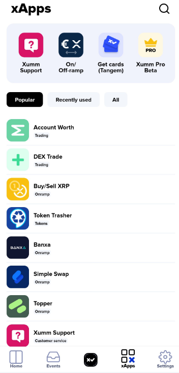 or you can find it by pressing the **xApps** button at the bottom of the main screen in Xaman (formerly Xumm).<br>
