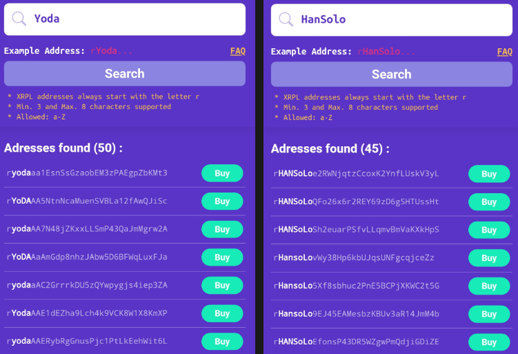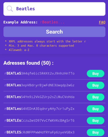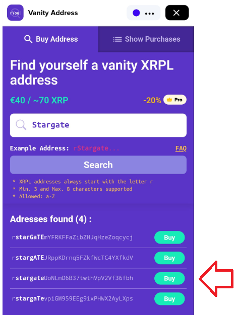 When you find an address that you like, just tap the **Buy** button beside it.