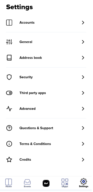 From the Settings Screen, you can configure all of Xaman's settings and configure the application to your preference.