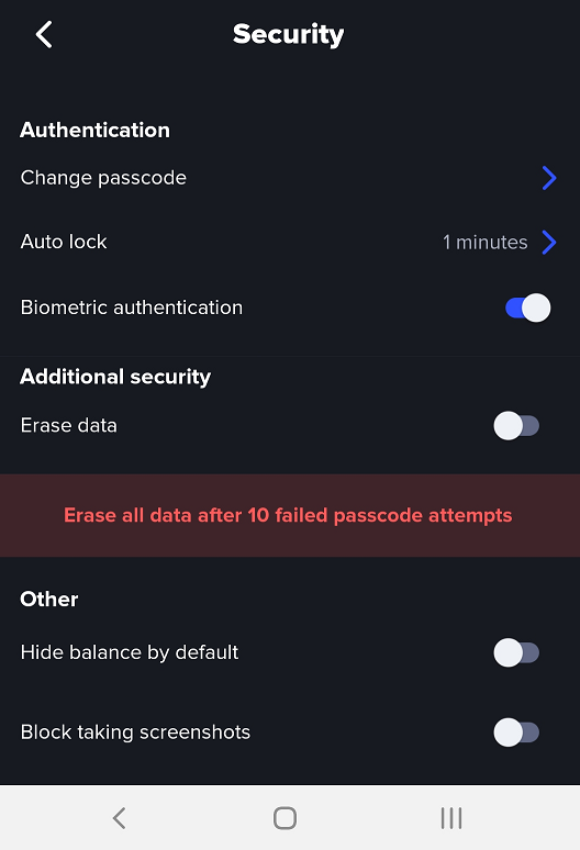 This feature allows you to enable and disable Biometric authentication. If disabled, Xumm will only accept the 6-digit passcode to unlock the application.