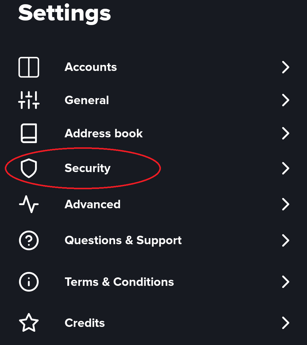 How to get to the Security screen