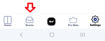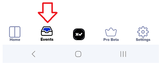 2\) Exit the Settings screen and press the **Events** button on the main screen of Xumm.