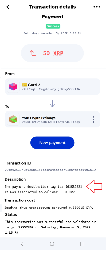 4\) At this point you can take a screenshot of the transaction as it will contain all of the information your exchange requires.