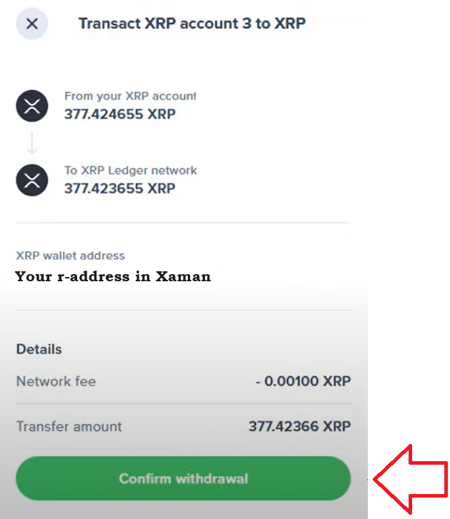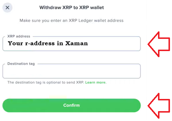 7\) Enter **your** **r-address** from Xaman into the **XRP address** field then press the **Confirm** button.