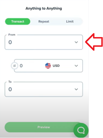1\) Sign into your Uphold account then press the **down arrow** in the **From** field.