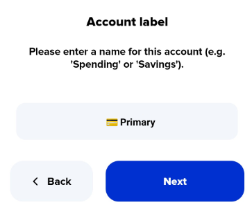 6\) Enter the account label for the card then press the **Next** button.