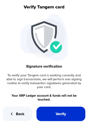 4\) Xaman will ask you test the card. Press the **Verify** button.
