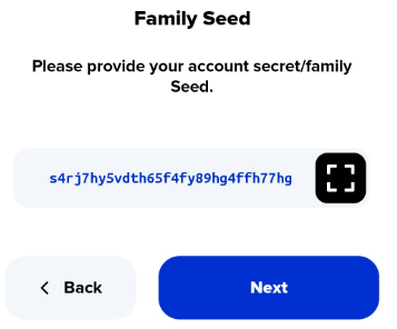 Please ensure that r-address that is displayed is the one that you intend to import. If it is **not correct**, please press the <img src="https://3221812686-files.gitbook.io/~/files/v0/b/gitbook-x-prod.appspot.com/o/spaces%2FMiHAzvIPISVuuzt0AeOR%2Fuploads%2Fgit-blob-0b3ce776b22a1fdfd993bc9975b92d8840dc6524%2Fimage.png?alt=media" alt="" data-size="line">button, then double check and re-enter your Family seed. When the correct r-address is displayed, press the **Confirm** button.