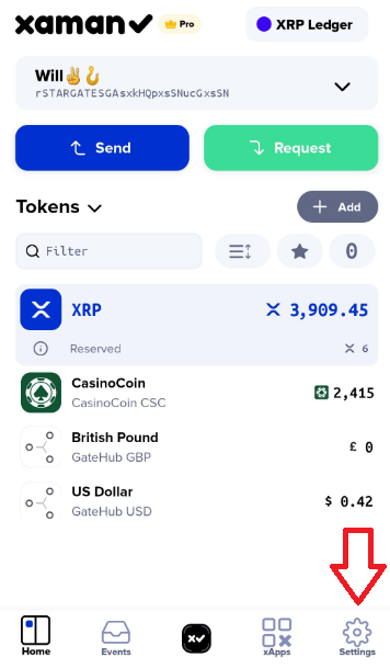 1\) Launch Xaman and tap the **Settings** button.