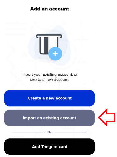 <figure><img src="https://3221812686-files.gitbook.io/~/files/v0/b/gitbook-x-prod.appspot.com/o/spaces%2FMiHAzvIPISVuuzt0AeOR%2Fuploads%2Fgit-blob-99ff35052316ec325605bce91f112645c9293f29%2FImport%20an%20existin%20account%20button.png?alt=media" alt=""><figcaption></figcaption></figure>