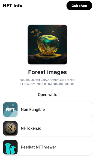 You can try opening your NFT using one of the NFT viewer xApps in the list. In this case, we used Peerkat NFT viewer to view this one.