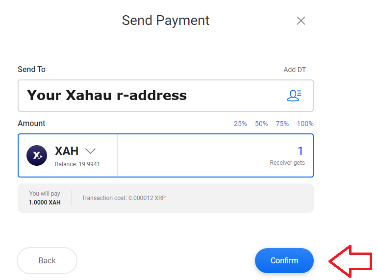 4\) A. Enter the r-address of the Xahau account you would like to send the XAH tokens to.\