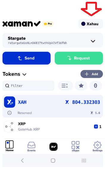 1\) Launch Xaman and switch networks to ensure you are connected to Xahau.<br>