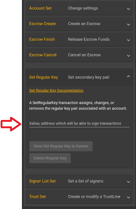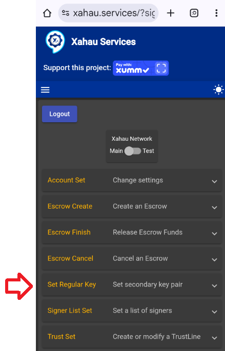 6\) On the Xahau Services page, select **Set Regular Key**