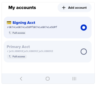 The Signing account must be imported into Xaman with **Full access**. (You must be able to sign transactions on this account.)