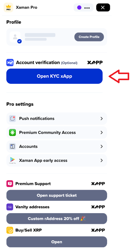 On the main page of Xaman Pro, press the Open KYC xApp button and complete the KYC process.