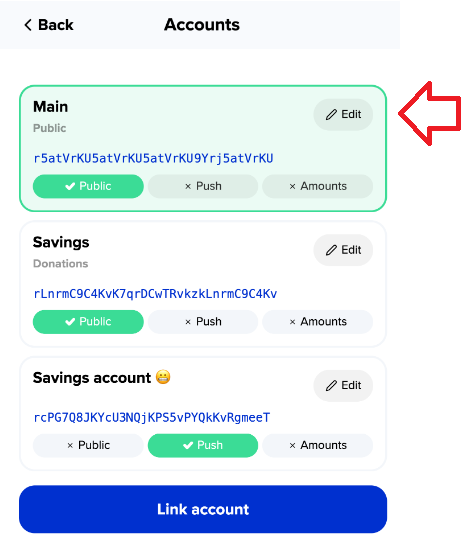Next, press the Accounts button then decide which account(s) you would like to link to your public profile and press the Edit button.