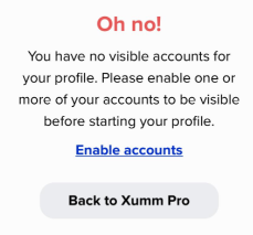 What do I do if I get this message: "Oh no! You have no visible accounts...