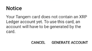This means that the card has not generated a set of private keys yet and that the card has not been used. Once you select **Generate Account**, the card will randomly generate a set of private keys and encrypt them on the card. As long as you see the above message, your card has not been accessed.